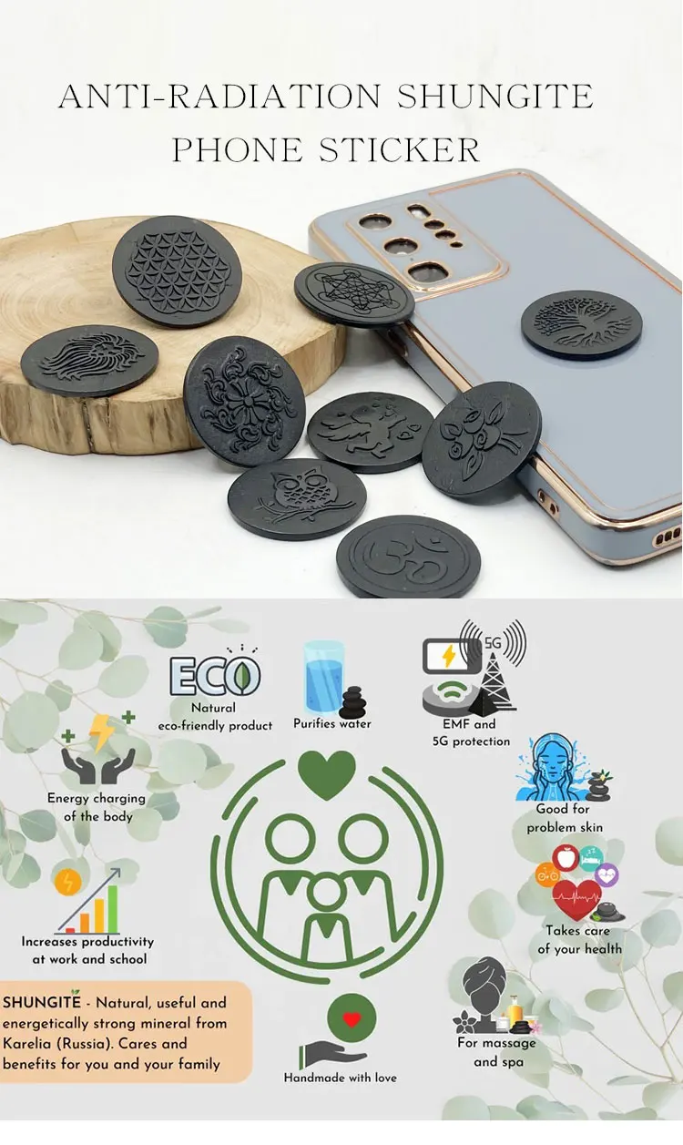 Discover the unique Free Shipping Russia Shungite EMF Protection Stickers, designed to shield your devices from harmful radiation. Crafted from natural shungite, these mobile phone plates offer a blend of style and functionality.